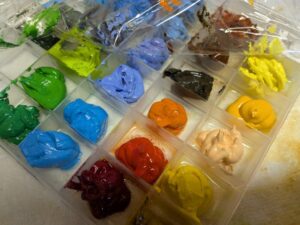 チューブの柔らかな材質の アクリル絵の具を途中から使用したけど